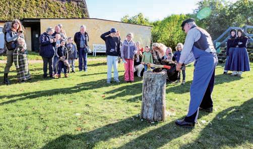 ferieaktiviteterne på Amagermuseet. Hønens vej fra hønsegård over huggeblok og til suppegryden blev illustreret for børn og voksne. Mere fredeligt skete det samme med æblets vej fra træ til mostflaske og æblekage – og ellers kunne gæsterne prøve kræfter med gamle lege, halmdukkeproduktion og alt det, andet der hører til, når Amagermuseets to gårde levendegør fortiden i ferierne. Da museet lukkede for sæsonen søndag, havde mere end 900 gæster lagt vejen omkring Hovedgaden for at få et indblik i livet på landet, som det tog sig ud for 100 år siden.