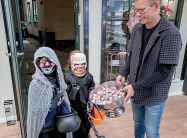 Der blev uddelt godter til både skeletter, hekse, zombier og rumvæsener, og både børnefamilier og handlende bidrog til den festlige stemning med grin, billeder og halloweenstemning i børnehøjde.