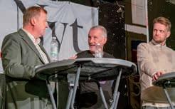 borgmesterkandidater, Peter Læssøe fra Liste T og Henrik Kjærsvold-Niclasen fra Venstre, er i en meningsudveksling under valgdebatten mandag den 3. november i Dragør Borgerforening. Læs om debatten, der blev holdt i salen på Beghuset, på side 10. Foto: Torben Stender