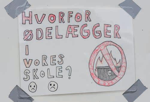 omkring på skolen, hvor de spørger de ukendte gerningsmænd: »Hvorfor ødelægger I vores skole?«