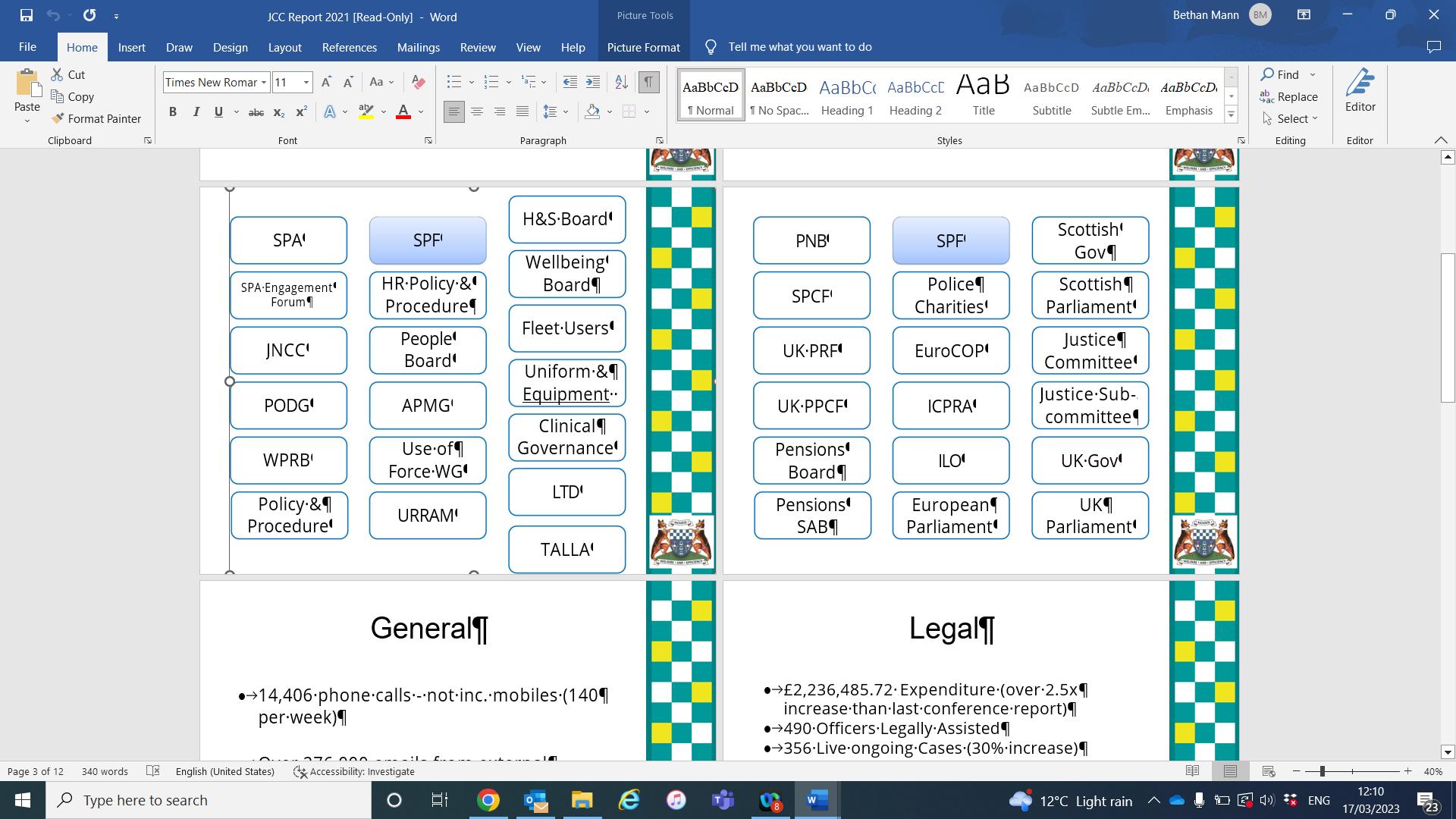 Legal - The General Secretary reported that since last Conference, legal expenditure stood at £2,236,485 72 He said 490 Officers had been legally assisted; there was 356 live ongoing cases and 83 cases had been settled. He explained that £4,268,210.18 had been obtained in settlements for members.