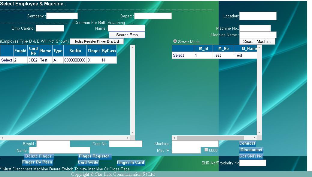 Other Services Star Link Communication Pvt. Ltd Machine Status Register finger/card through software Group Masking to machines Master Report Punch report