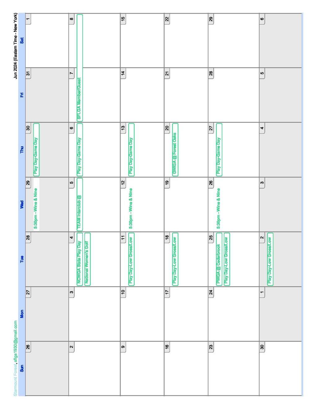 We will be hosting Wine & Nine playdays on select Wednesday evenings. Tee Times will start at 5:30. You can sign up on the Starmount Forest website or App. This is a fun, casual outing for our SFLGA lady members and a great way to meet new ladies.