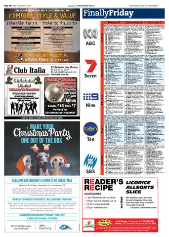 Perfect for Christmas get together Call the Club on 5250 2349 to book your table