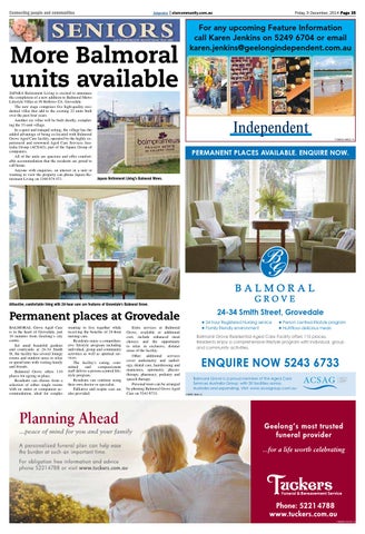 ENQUIRE NOW 5243 6733 Balmoral Grove is a proud member of the Aged Care Services Australia Group, with 39 facilities across Australia and expanding. Visit: www.acsagroup.com.au 1165997-CB49-14