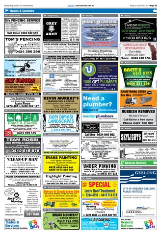 • Lawn Mowing • Cabinet Makers • Rubbish Removal • Pergolas, Decks • Gutter Cleaning • Carpets Layed • Tilers-Pavers • Roof Repairs • Tree Lopping • Window Cleaners • Appliance Repairs