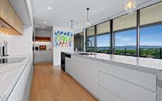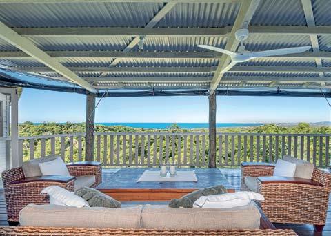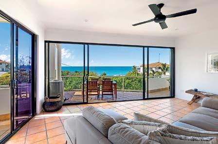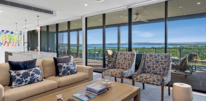 The salubrious three-level, threebedroom/two-bathroom penthouse apartment with a sky terrace has swoonworthy eagle’s eye views sweeping Laguna Bay, the Coloured Sands, Double Island Point and beyond.