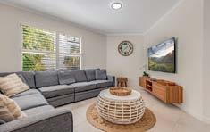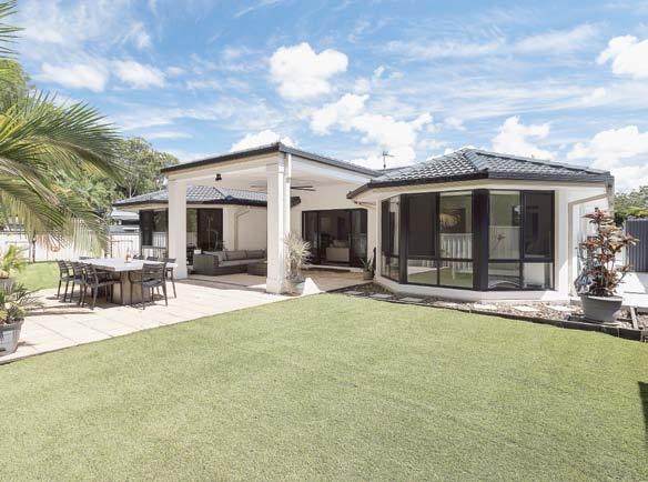 massiveundercoveralfrescoentertainingterrace, luminescentpoolandtranquilsurroundsoflawnand flourishingsub-tropicalgardens.Openthebackgate towalkingandcyclingtracks,otherneighbouring attributessuchaswide-openschoolsporting fields, numerousparkswithswingsandslidesandnotethe proximitytotheNoosaRiver.