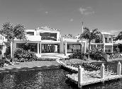 beguiles,whilstexemplifyingthemagicaloutdoors.Sets ofslide-awaywhiteshuttersandglassdoorscoalesces totheprivatenorth-facingundercoverterrace,thus articulatingthesuperlativeposition.Lawn,dottedwith exoticfoxtailpalmsextendstothetidalbeachandlong jetty/pontoon.Sundownersanyone?