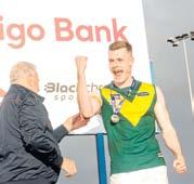 The players celebrate a late Liam Hasler sealer. Ryan Johnson celebrates as he is awarded his best-on-ground medal.