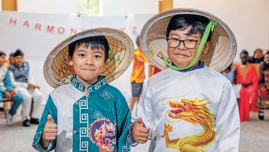 Students and aged care residents and staff adorned many varieties of cultural clothing for a Harmony Day concert at Mercy Place home in Dandenong.
