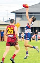 “East Geelong are very good at holding out of the contest and getting that overlap with handball, so that was probably hurting us a littlebitontheoutside.We’dwinontheinside, but then once the ball tumbled outside of the contest, they were off to the races and are a very, very skillful footy team.”