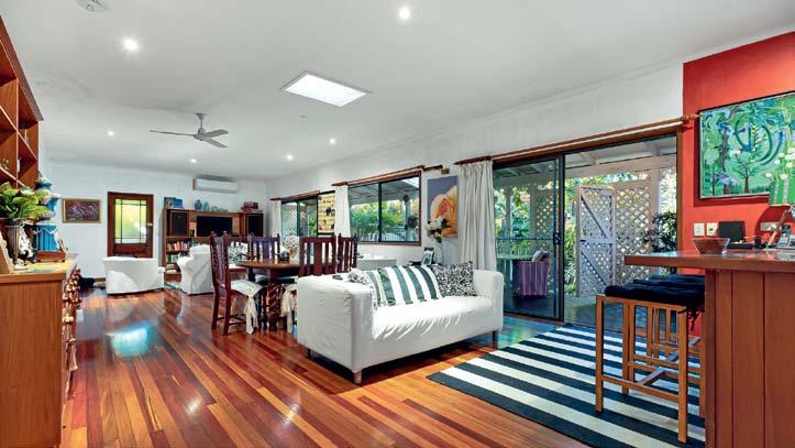 A country style kitchen with slate flooring, overlooks the dining and living areas which lead out to the enormous wraparound covered deck. Ideal for year round Queensland style indoor outdoor living.