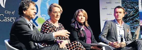 and community leaders including Simon McKeon, Emma Dawson, Honi Walker with MC Michael Rowland from the ABC at a Greater South East Melbourne (GSEM) summit at Bunjil Place on Friday 3 May. Among the topics on the agenda were opportunities transitioning to net-zero, future trends in the South East and breaking down barriers to work. More on pages 12 and 13