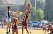 The Hawks shut down Narre Warren’s avenues to goal in a low scoring first half where Monbulk held a narrow 1 point lead at the long break. A red card handed to a Monbulk player early in the third term turned the game as the 17 man Hawks conceded 4 quick goals after that. Both sides were off target in the last quarter as the Magpies eventually took out their smallest win for the year to date by 32 points. Unforced errors by Monbulk, in missing targets and dropping marks proved costly, as their desperation and effort was exemplary for the whole of the match and a win does not look far away.