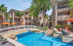 Lovely views over the resort pool, manicured gardens and elevated to draw in the cooling Noosa River breezes.