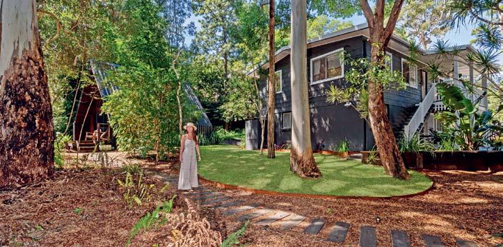 eucalypts,localbird lifeon-song,andtwo dwellings nestledinwhat couldonlybeperceivedasan extension ofthe floraandfauna-filledpark,withmeandering pathways.
