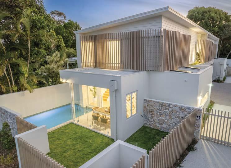 Discovertheepitomeofseasidesophistication,with anabundanceofnorth-easterlyviewsfromtheNoosa National Parkheadland sweepingthe CoralSea,and minutesfrom toessinkingintothewhitesand.Loving SunshineBeachdoesn’tget muchbetterthanthis! The strikingbrightwhiteduplexcalled Paperbark, designed by the renownedStephenKidd,iscentered aroundsavvyindoor-outdoorspacesforallseasons