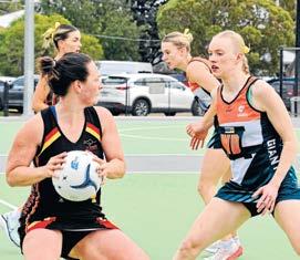 Above: Giants coach Dale Smith instructs his players. Left: Nikita Handley passes to Rachel Palmer-Brennan. Below: Karina Martin looks for a way forward.
