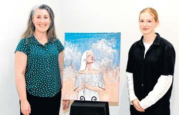 Melinda Whyman (Tender Funerals) with artist Amber Hamer and her work titled Acceptance. (Stewart Chambers: 434901)