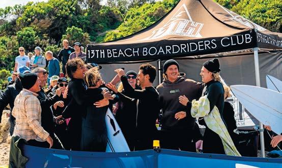 Victorian boardrider clubs flocked to Smiths BeachonPhillipIsland,where2ftto3ftonshore waves set the stage for a big day of competition. In one of the semi-finals, it was a Greater Geelong match-up with 13th Beach and Torquay meeting with both teams’ first surfers scoring high six-point rides. Then, Torquay’s second surfer, Xavier Huxtable, broke the tie with a 7.27 point ride for two big backhand hooks.