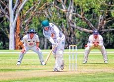 Left: Mike Norris made 28 for the Bears. Centre: Monty Juffermans-Goodluck drives to mid-wicket for Geelong West. Right: Marshall’s Jake Hilton drives. (Pictures: Ivan Kemp) 460899