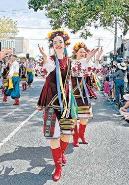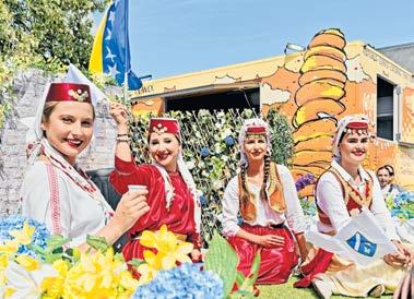 Pictured during the parade are Emilia, Masha and Elsa from the Serbian community.