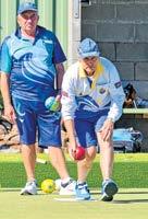 Robert Grubb steps into his bowl, and right, Peter Boyle plays the forehand.