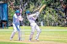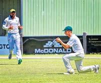Left: The Frogs’ Owen Dunipace batted brilliantly for 96. Centre: Brad Brown guides this ball through gully. Right: Jake Nichols takes the catch to dismiss Gautham Sathikumar.