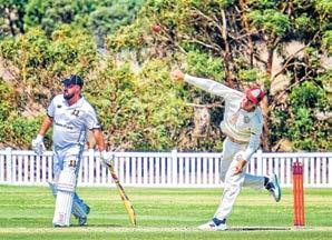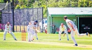 Rajasekhar Lankireddy bowls to Owen Dunipace, who made a match-winning 96 for Murgheboluc. (Ivan Kemp) 460896_08