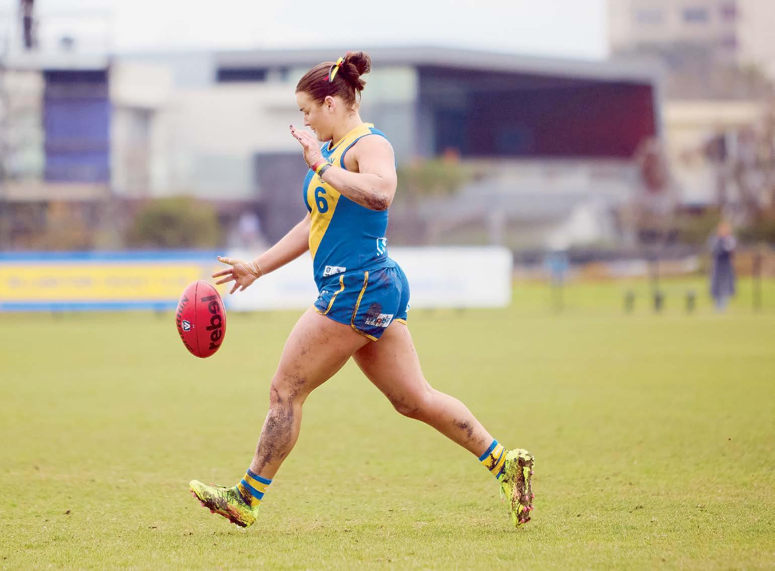 on a netball court. As well as playing for Spotswood on Friday nights, she plays for Bacchus Marsh in the Ballarat Netball League on Saturdays.