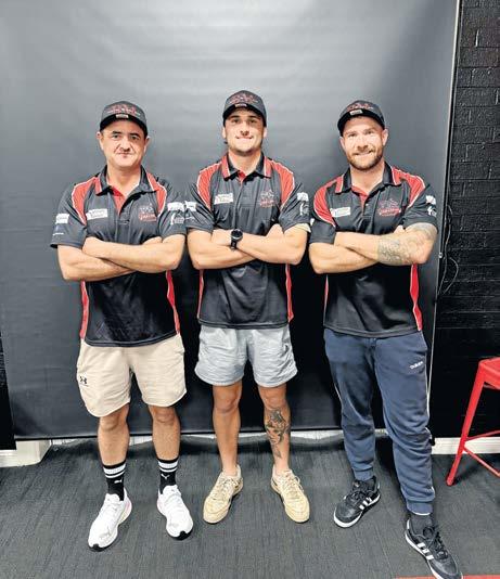 Devon Meadows co-coaches Ryan Hendy and Dean Kent with new recruit Kye Quirk (middle). (Supplied)