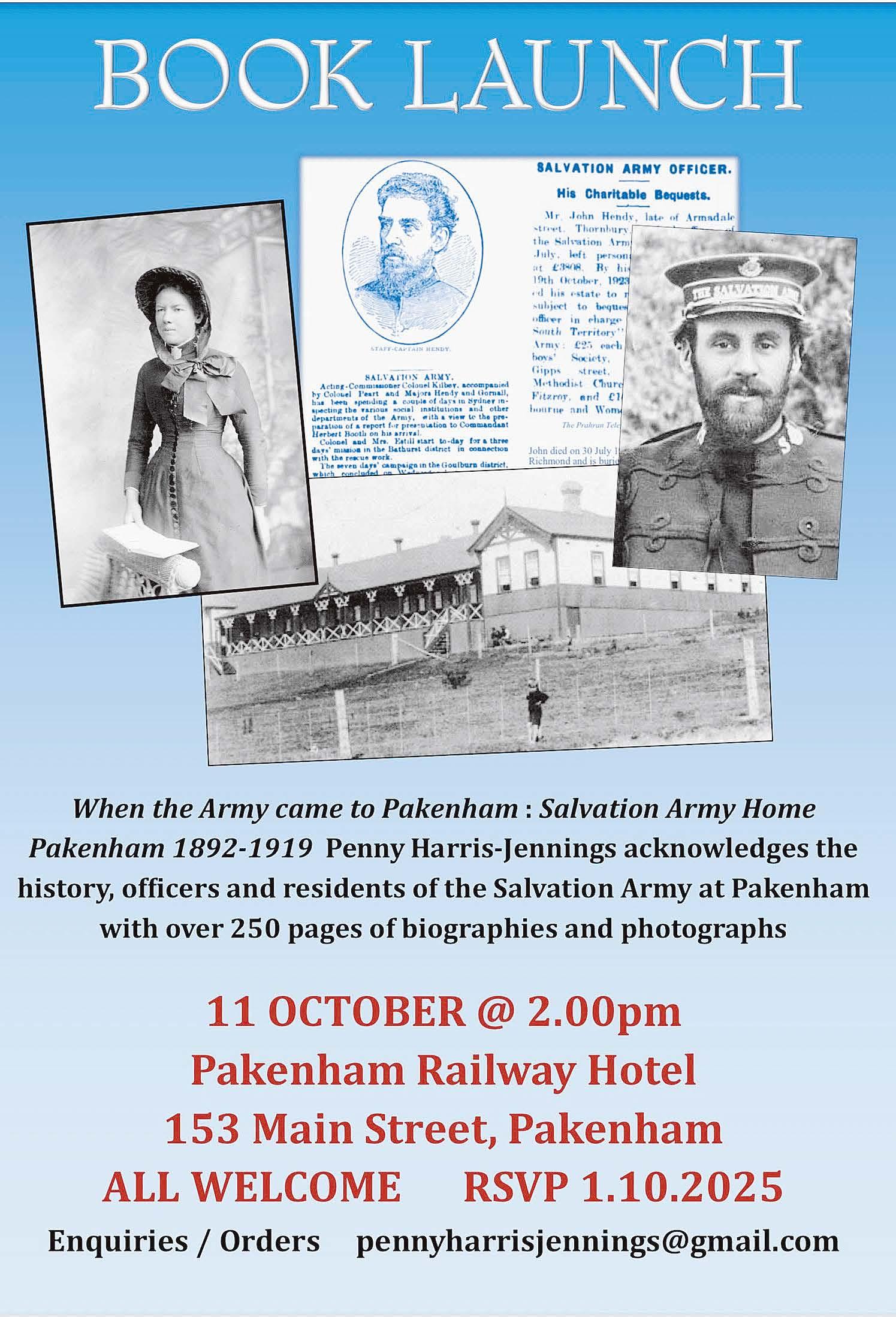 A launch for ’When the Army Came to Pakenham: Salvation Army Home Pakenham 1892–1919’willbeheldthisweekendtomarkitsrelease.