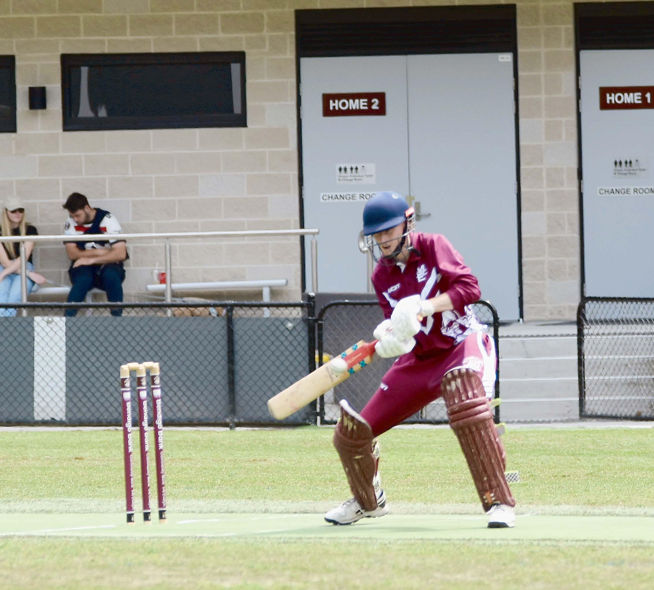 won the toss and elected to bat. After an opening partnership of 73, they compiled 5/168cc off their allotted 36 overs. Coldstream’s opening batsman and captain, Ian Thompson, top scored with 61 off 102 balls and was well supported by Scott Adams, 41* off 43 balls. Kilsyth’s co-captain Greg Gommers was the best of the bowlers with 2/17 off five overs, while the other wicket takers were Jordan Relf, 1/24 off six overs, and Tegan Unternahrer 1/22 off two overs. A first wicket partnership of 117 between Tyron Paspa, 44 off 87 balls, and Greg Gommers, who finished on 78* off 87, set up the victory for the Redbacks. The match ended with Kilsyth on 3/169 after 32.4 overs to record a comfortable win.