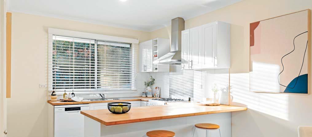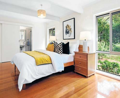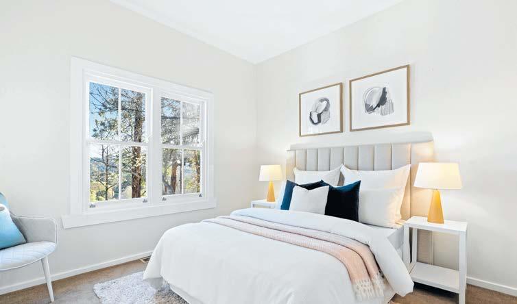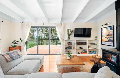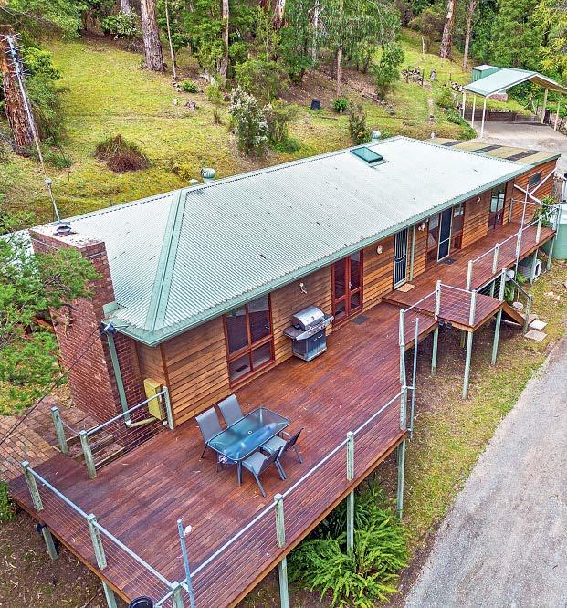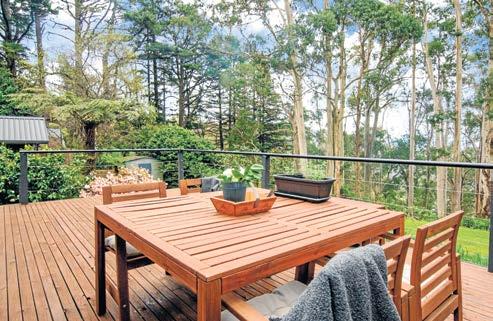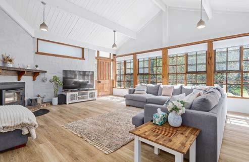 At the heart of the home, the wellappointed kitchen features timber benchtops, free standing oven, great storage, dishwasher, breakfast bar and adjoining meals area. Step down into the lovely lounge area that boasts are charming wood fire for those cooler evenings. Double French doors open out to an inviting deck, ideal for weekend brunches or relaxed BBQs.
