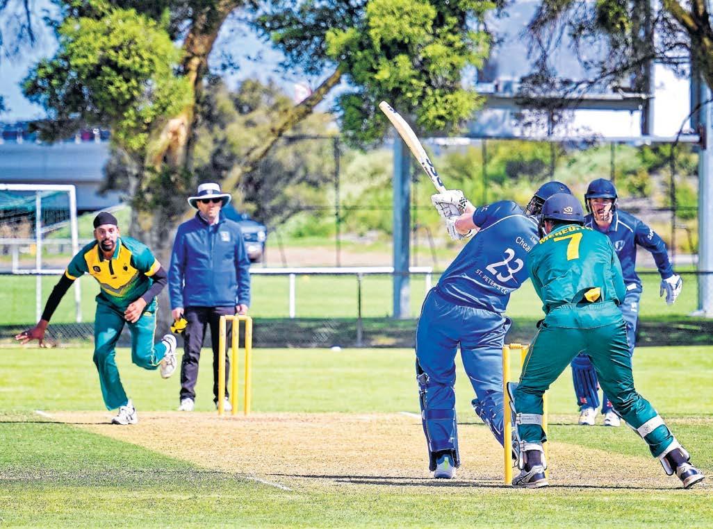 Leggie Sydney Ray (1/32 from 10 overs), Butters (2/16 from 10) and Mulgrew (1/37 from 10) all played their role in restricting St Peters to 9/190, although a nice 45 from Brad McMaster pushed the score close to 200.