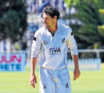 In the absence of Adam Costello, Dale Kerr was promoted to opener for North’s run chase. Kerr (18) and Cooper (41) rekindled their Anglesea days with a 42-runstand,butat3/80,thegamewasstill anyone’s.
