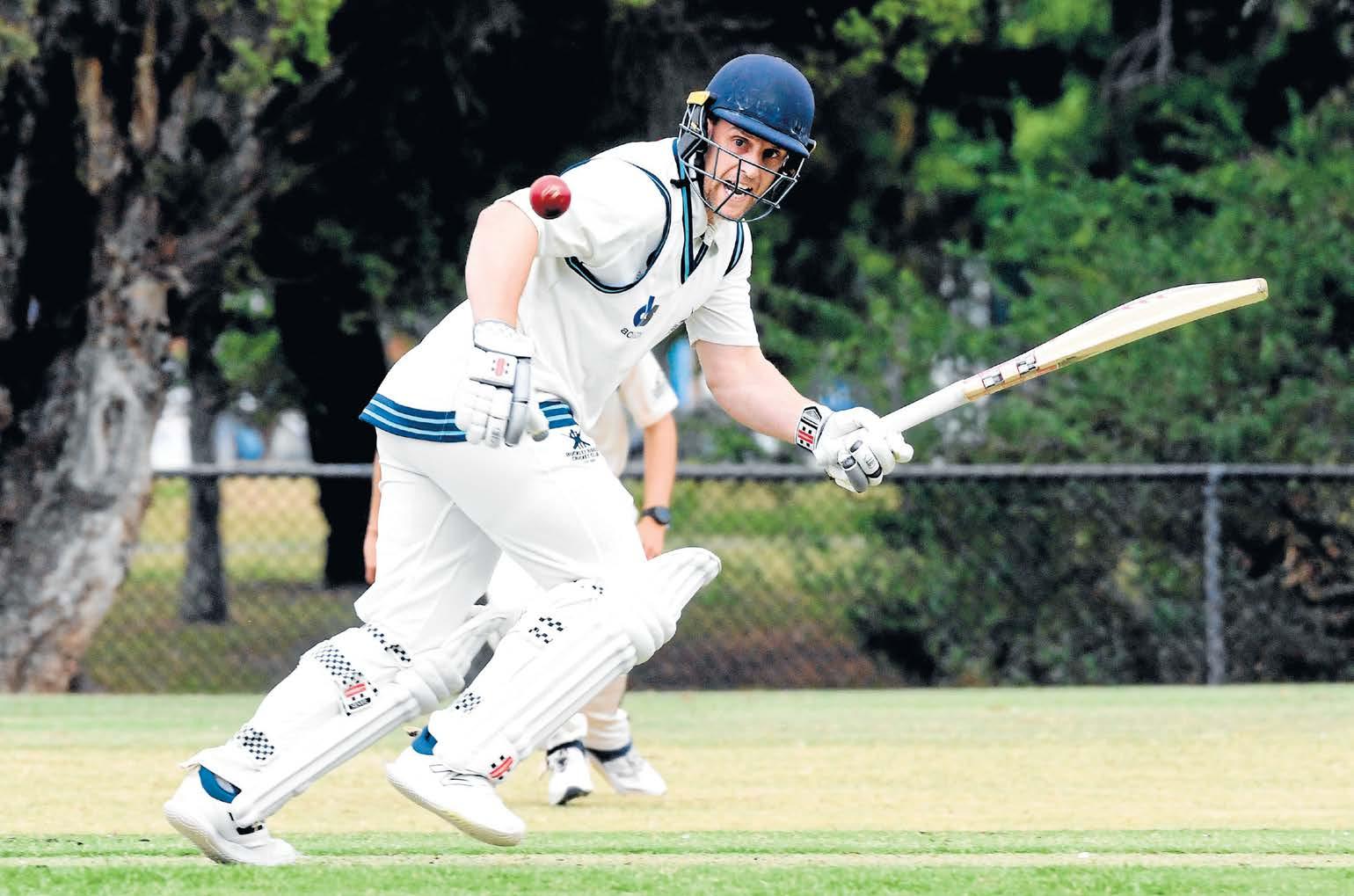 Jett Kelly also made a slashing lower order 42 before Nathan Whitford and Hayden Wrigglesworth reduced Kinston-Hawthorn to 5/54 at stumps.