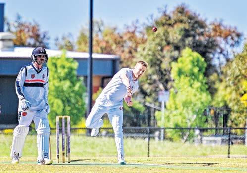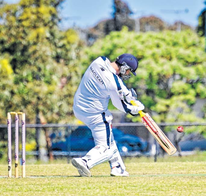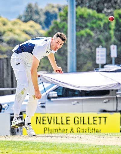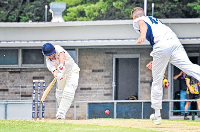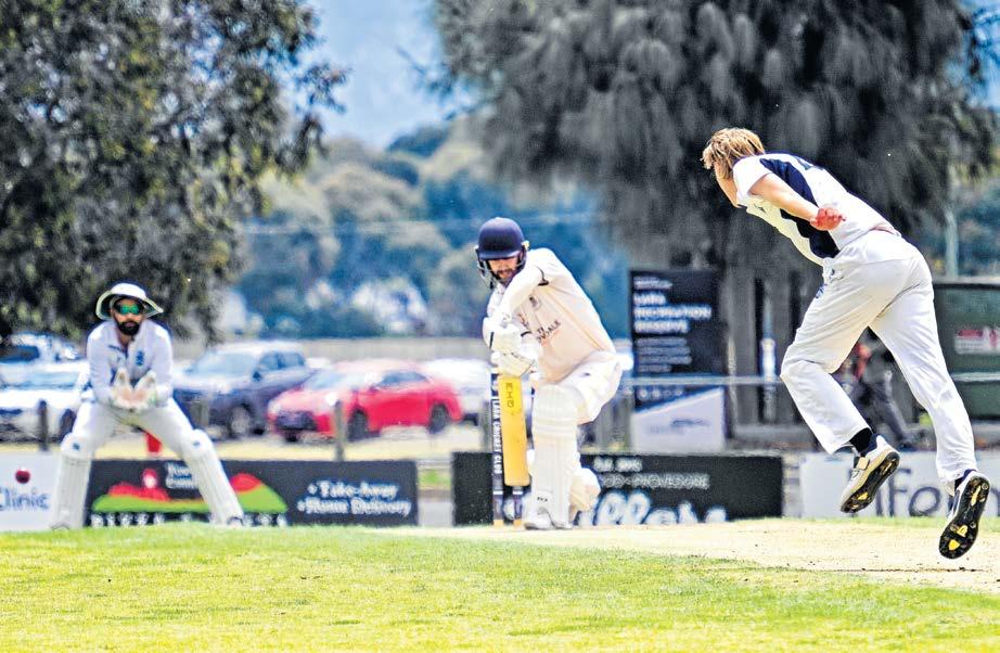 ladder on the back of a magnificent century by captain Luke Ford. Newtown & Chilwell resumed at 8/224 and ended on 9/253 with Haydn Burke getting to 50 and Jack Trewin picking up a wicket to add to his four from day one. Ford was then in complete control ofthesituationwith117from176ballswhile younger brother Billy Ford contributed 51 in a 107-run stand. The Saints ended at 8/268 with Jordan Lewis (3/45) the best of the Two Blues’ bowlers.