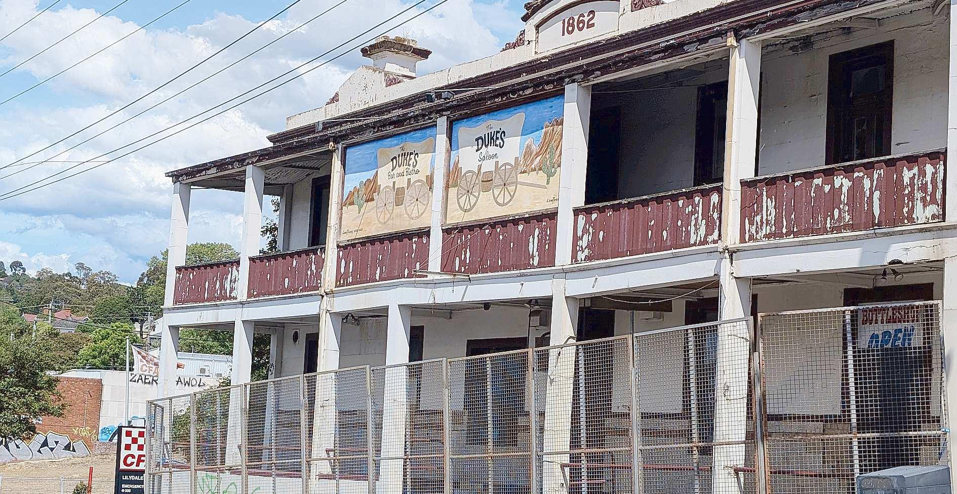 Also known as The Lilydale Hotel or Duke’s Saloon over the years, the formerly popular pub has fallen into disrepair over the years despite community support for its restoration.