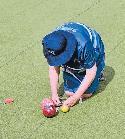 Lyn Baker performing a caliper measure as umpire at Yarra Glen. (Supplied)