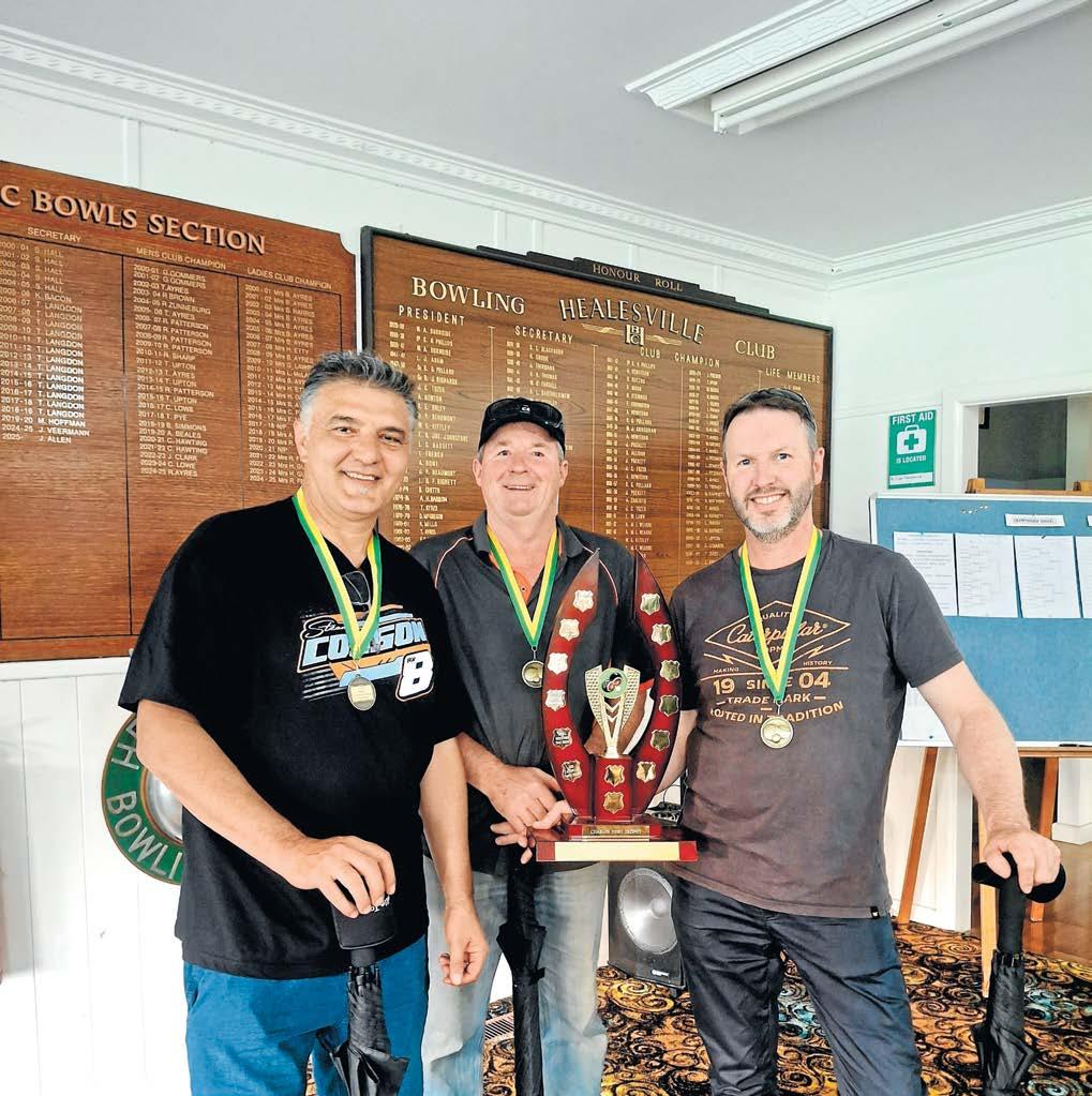 for theweekend pennant games. At home, Division 1 played Croydon on the grass green. After the rain cleared, Yarra Glen got away to a bright start, and held on to that advantage for the rest of the day, winning 87-70 (14 points). Ben Simmons 27/9; Beau Simmons 17/19; M. Gardner 29/21; M. Creighton 14/21.