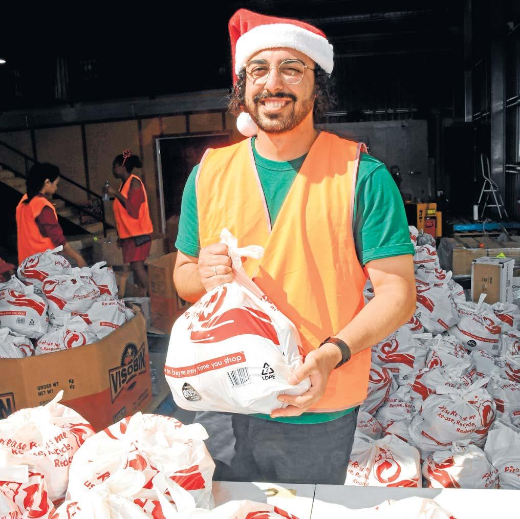 We Care Community Services volunteers PJ, Innocent and Lara were among dozens who were giving families a helping hand on Friday 12 December.
