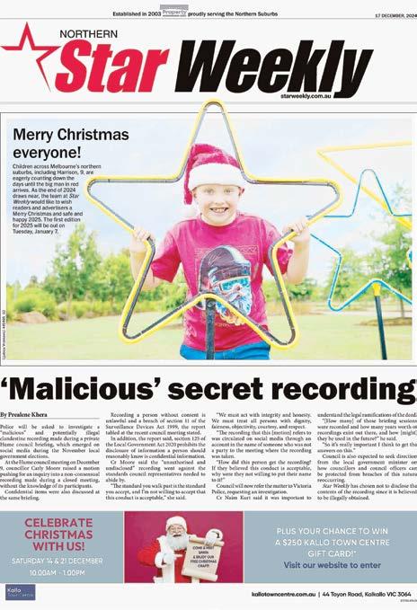 Children across Whittlesea and Hume, including Penelope, 4, are eagerly counting down the days until the big man in red arrives. As the end of 2025 draws near, the team at StarWeeklywould like to wish readers and advertisers a Merry Christmas and safe and happy 2026. The first edition for 2026 will be out on Tuesday 6 January.