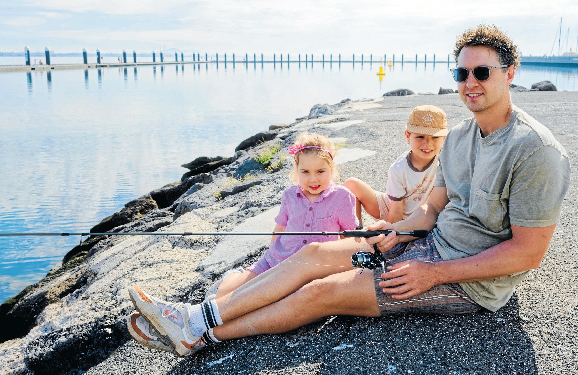 It was a great day for some fishing at Geelong waterfront on Tuesday 24 March for Kyle Stevenson and his children Elsie and Spencer (pictured). Kyle already had one snapper in the bag and was hoping for more.