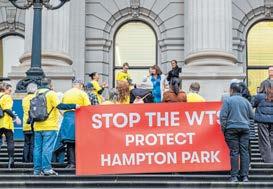 More than 50 residents from Hampton Park and surrounding suburbs braved heavy rain on Wednesday 28 May to rally at the Victorian Parliament against the proposed Hampton Park waste transfer station.