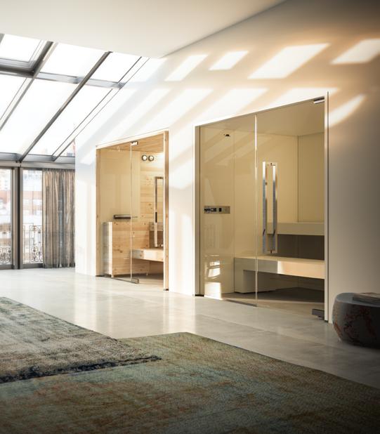 Cura dei dettagli, estetica essenziale, colori, fragranze e materiali di ispirazione naturale piacevoli al tatto rendono l’esperienza in sauna ancora più intensa.