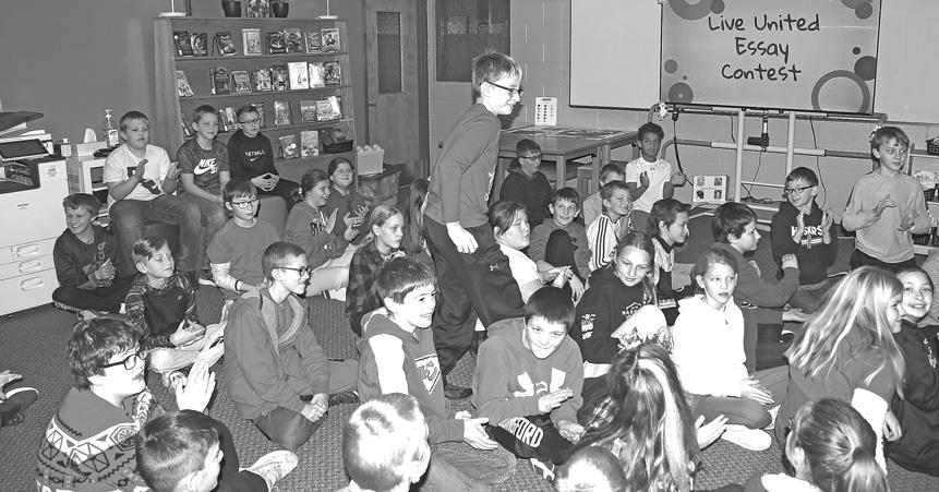 On Dec. 20, 2022, representatives of United Way presented fifth grader Samuel Kunstleben with a $75 Scheels gift card in the library of the Holdingford elementary school. His entire class was there to see the presentation. His essay was one of 14 runners-up in the United Ways’ Live United Essay Contest.