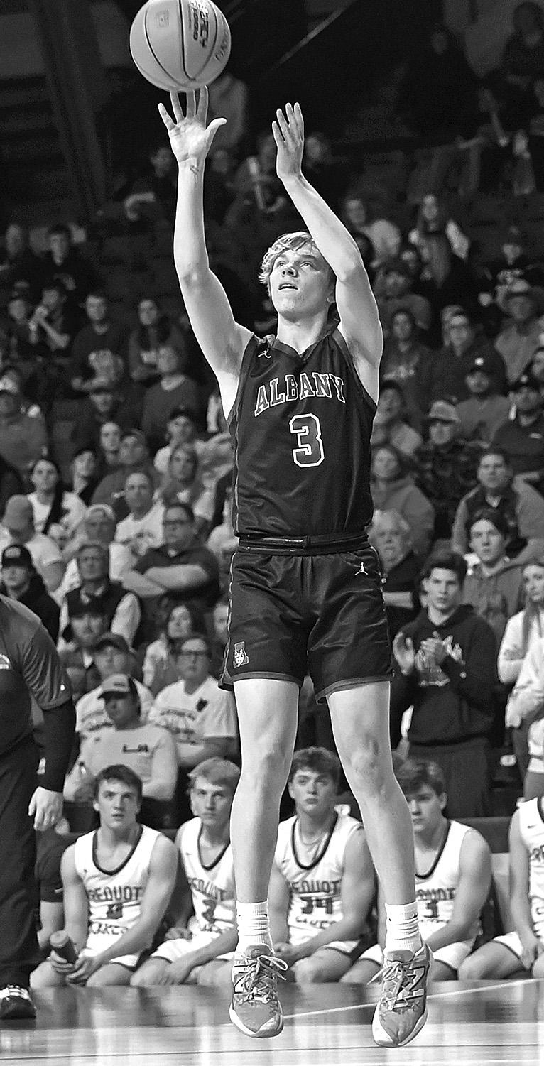 Albany’s Carter Voss fires a jumper during the