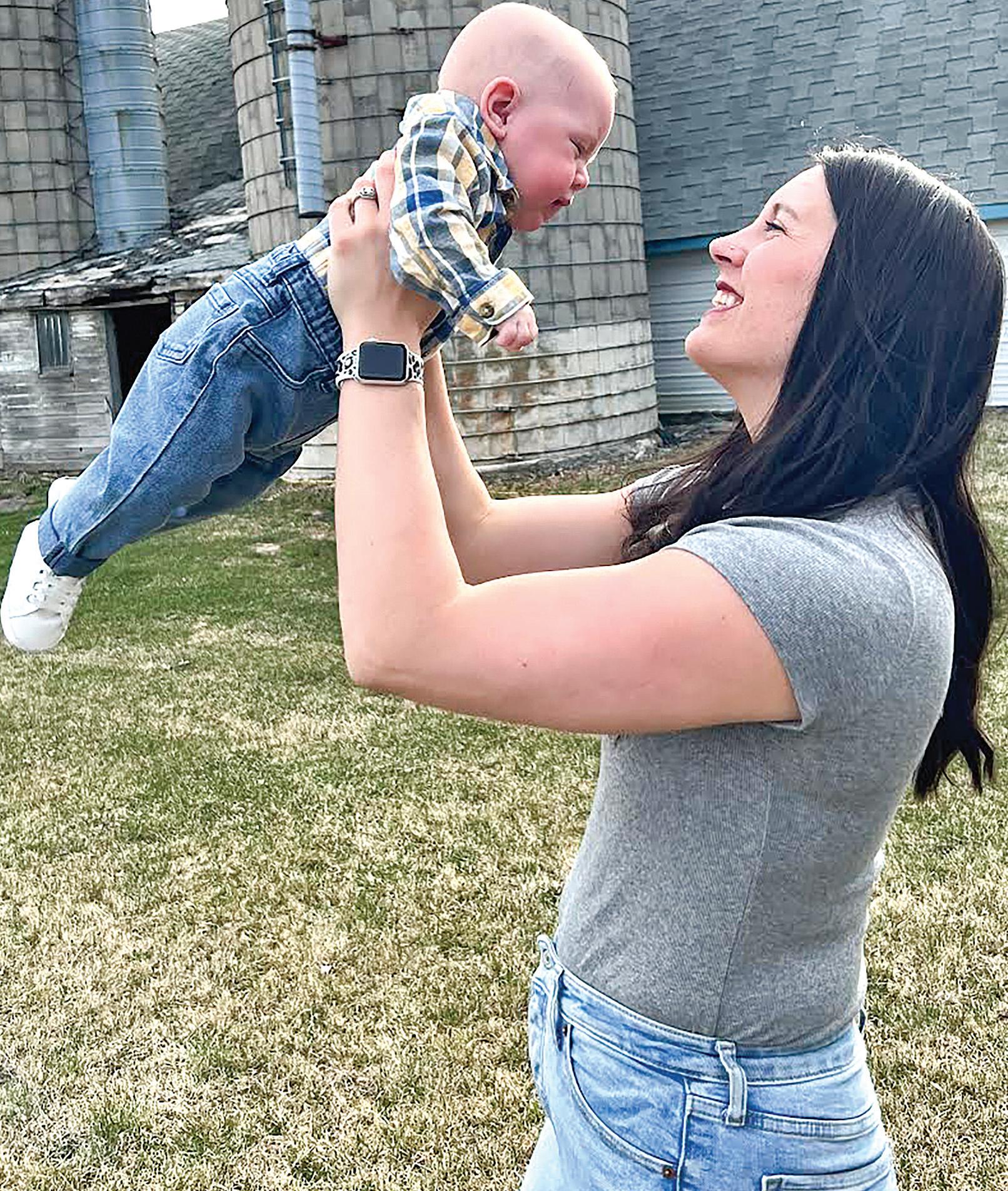 Gina Lomheim connects with her and husband Kris’s son, Henry, May 4 at their Farming Township farm in rural Farming. Henry was born Oct. 13, 2022, three months before his due date and today is a healthy, happy brother to Harrison and Madelyn.